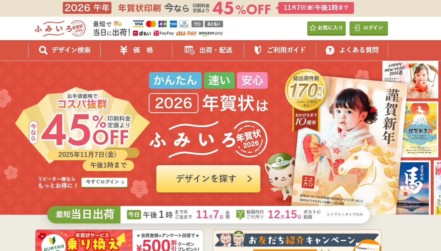 ふみいろ年賀状は、オンラインで簡単に年賀状を作成・注文できる印刷サービスです。