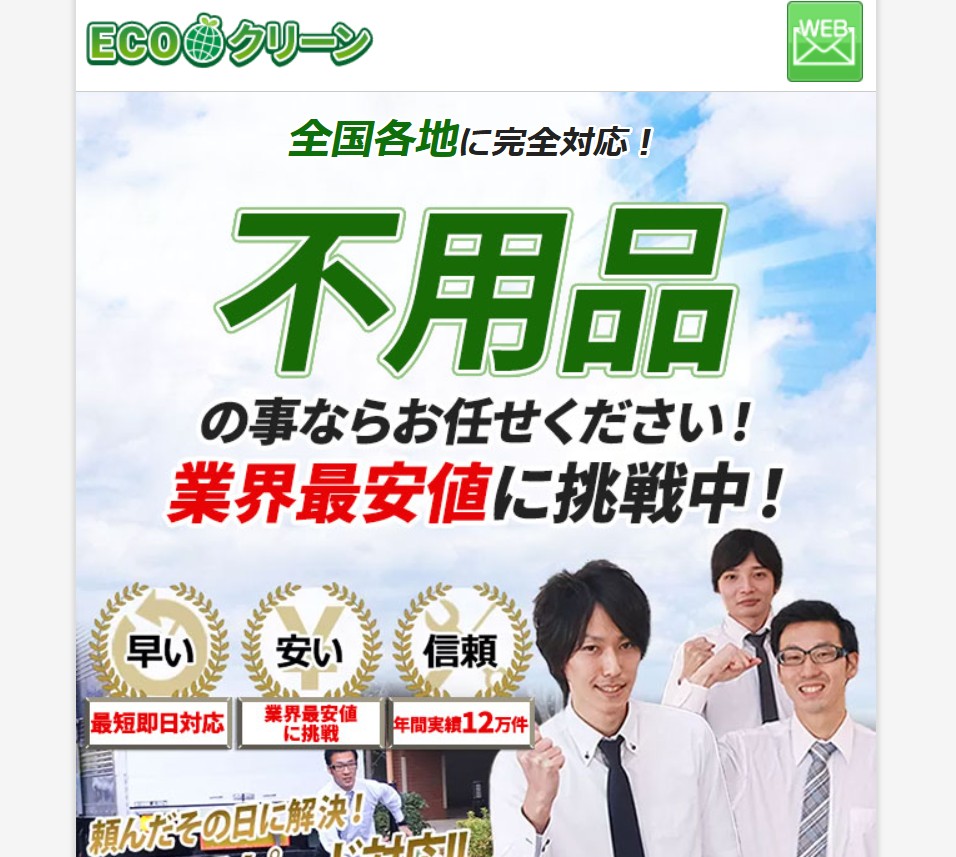 ECOクリーンは、全国どこでも依頼できるうえ、迅速で丁寧な作業が特徴です。