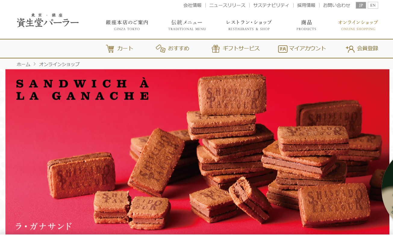 公式オンラインショップでは、その資生堂パーラーが手がけるお菓子や食品を、インターネットから注文できます。