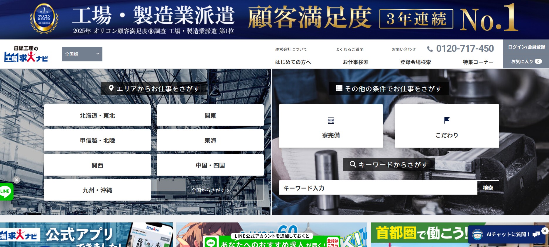 工場求人ナビは、製造業や工場勤務に特化した求人を多数掲載している求人サービスです。